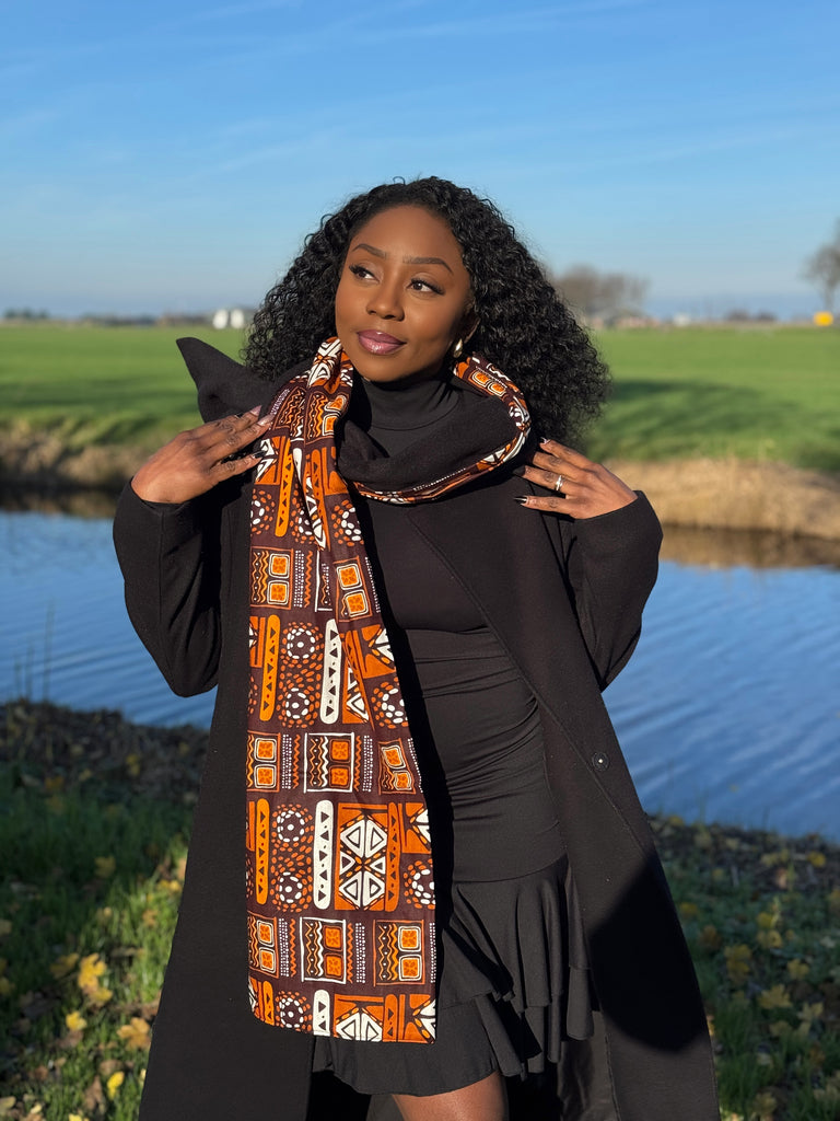 Afrikanischer Print Schal Unisex - Schmales Modell - Braun Muster Bogolan