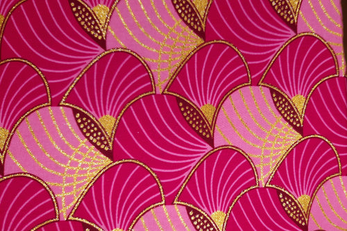 Afrikanischer Stoff - Exklusiv Verschönerte Glitzereffekte 100% Baumwolle - GL-4050 Rosa Gold Kente