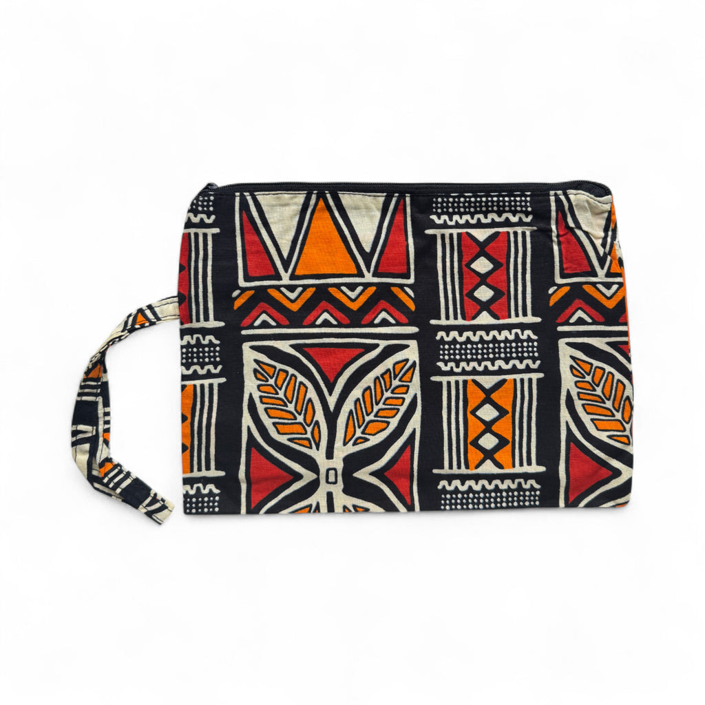 African print Makeup pouch / Pencil case / Cosmetic Bag / Coin Purse - Red & Orange Bogolan Symbols