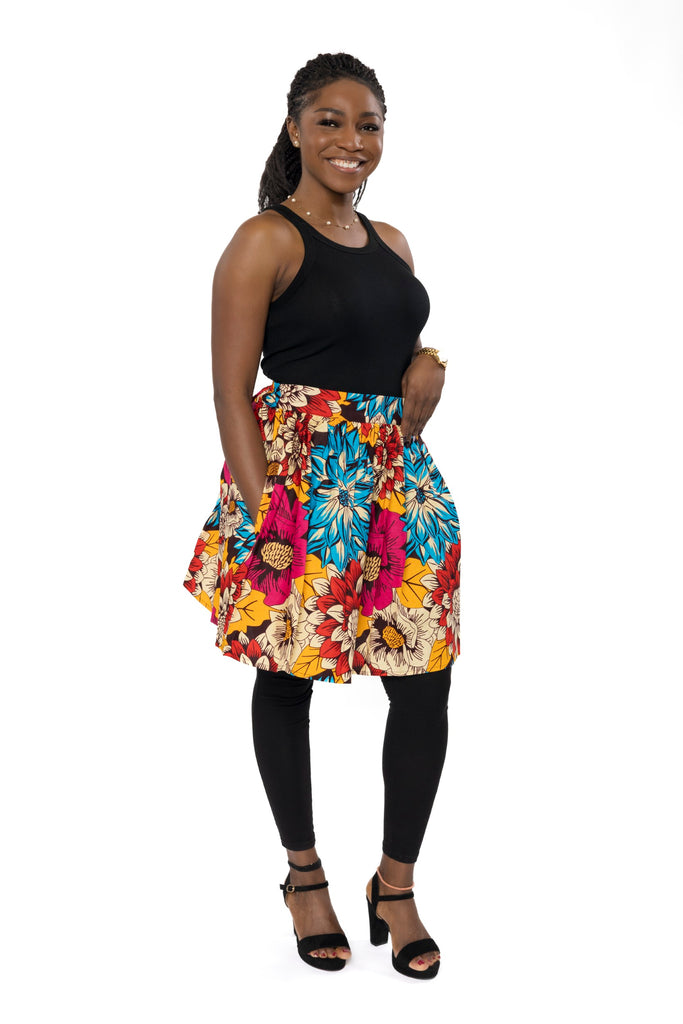 African print mini skirt - Red Blue Flowers