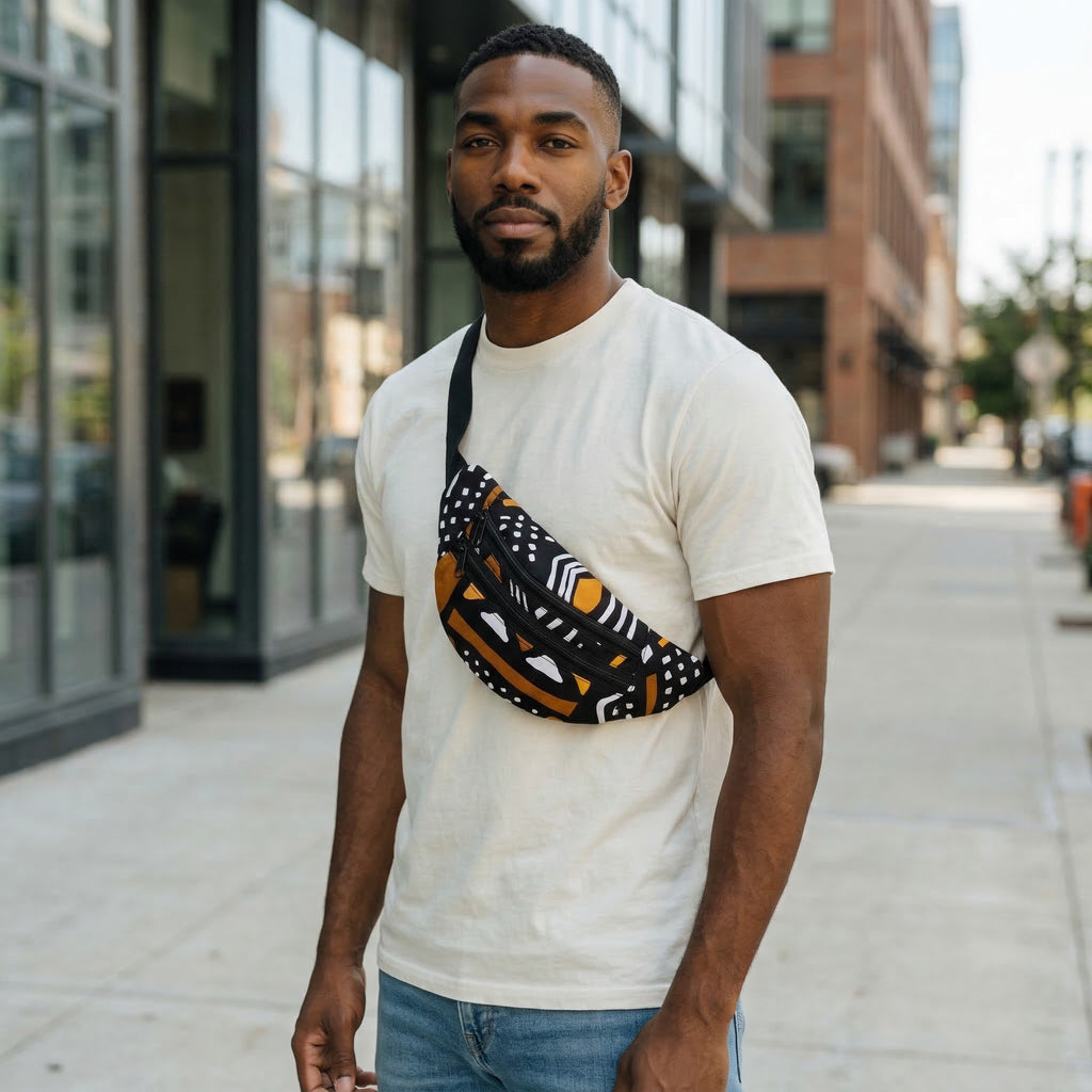 African Print Fanny Pack - Brown Black Bogolan - Ankara Waist Bag / Bum bag / Festival Bag
