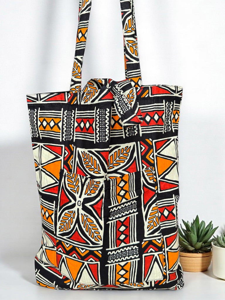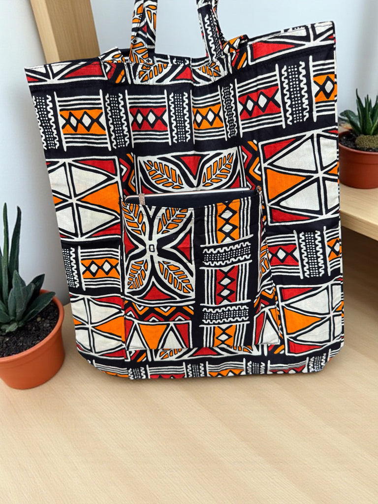 Shopper bag with African print - Orange - Reusable Cotton Tote Bag