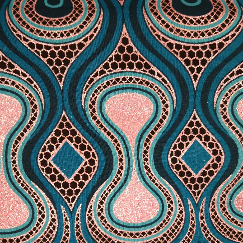 African print fabric - Exclusive Embellished Glitter effects 100% cotton - GL-4017 Turquoise Pink Rose Gold