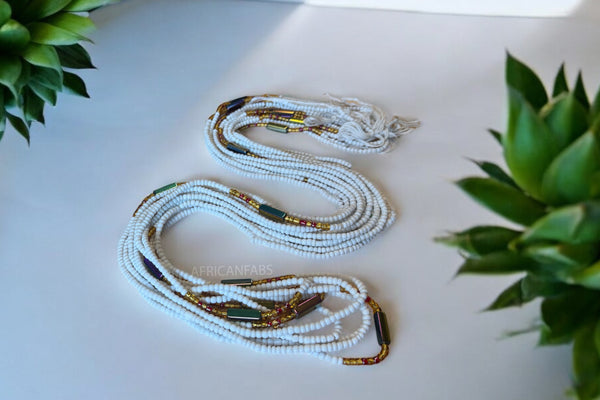 Waist Beads / African Hip Chain - Ayo - White (Traditional non-elastic string)