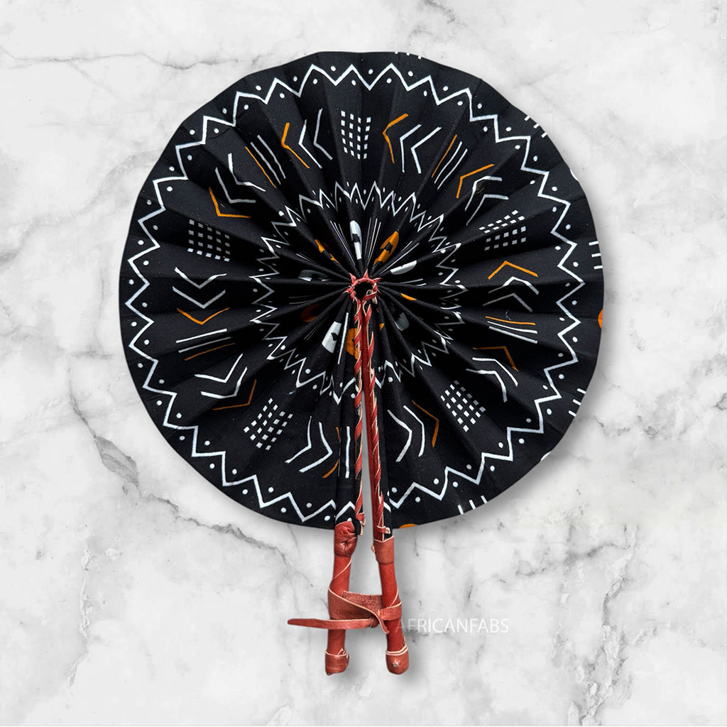 Eventail Africain - Eventail en Wax - Kwaku - Noir