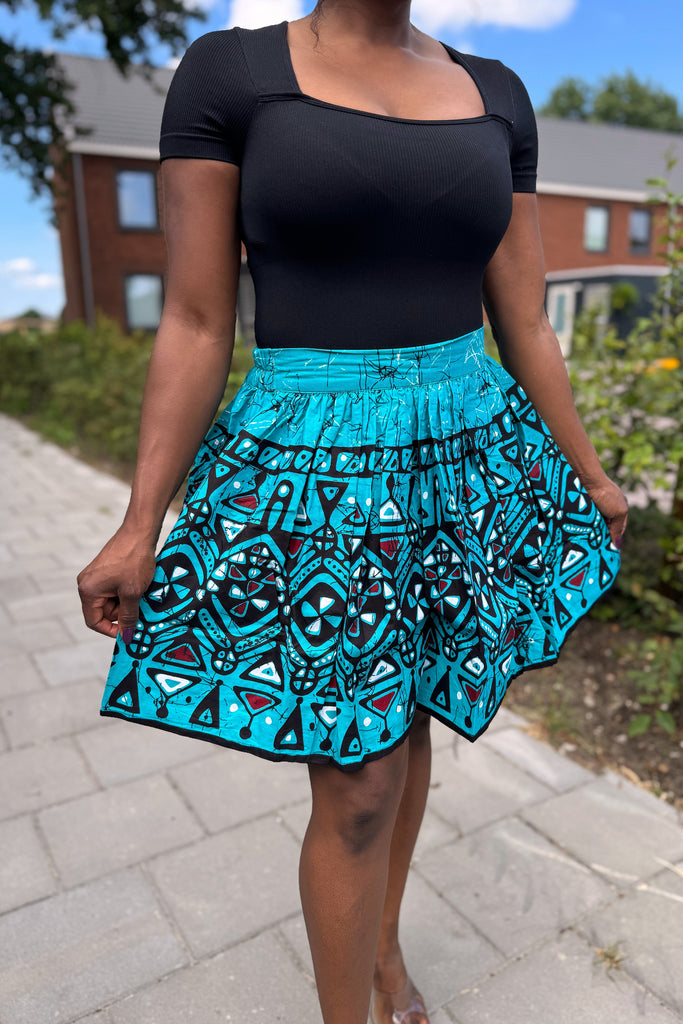 Mini-jupe à imprimé africain - Turquoise Kampala Pattern