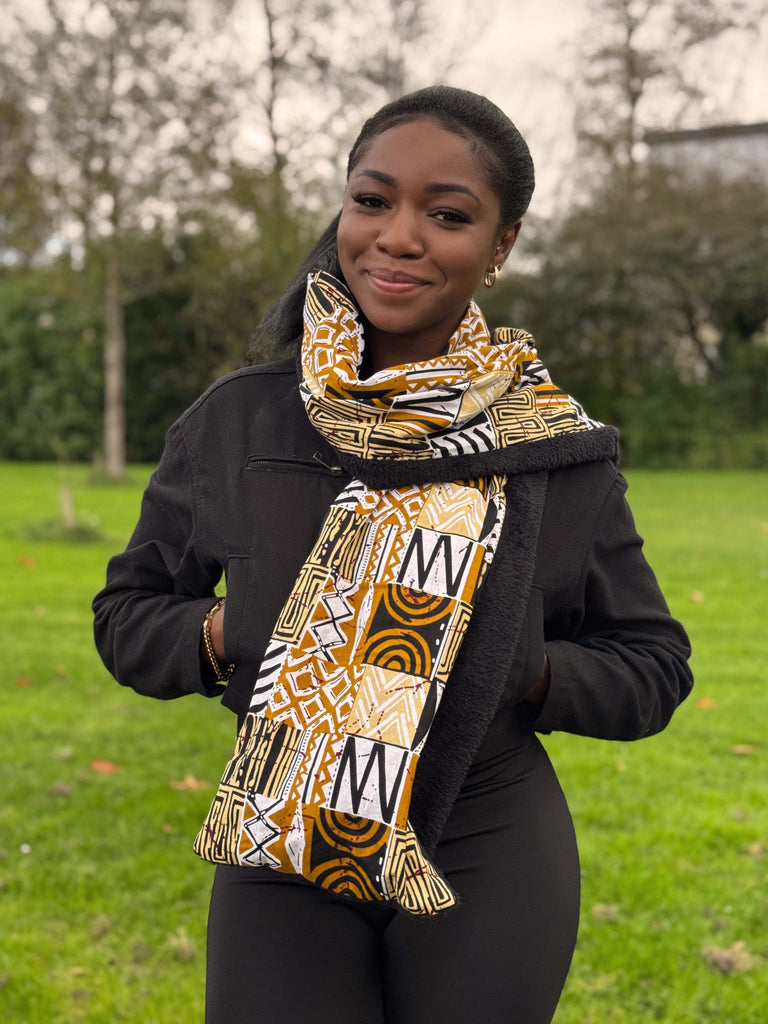 Écharpe d’hiver imprimée africaine Unisexe - Modèle étroit - Sable Mosaïque Bogolan