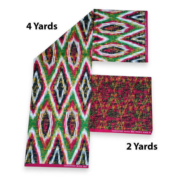 Découvrez notre magnifique waxprint africain bicolore, une combinaison spéciale de 4 yards + 2 yards, soigneusement assortis pour un ensemble élégant et polyvalent.