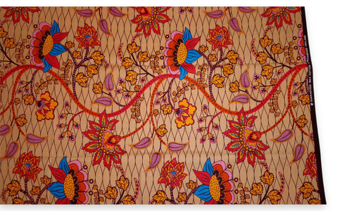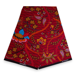 Tissu VLISCO Wax Hollandais - Rouge / Jaune SUGAR CANE PLANT