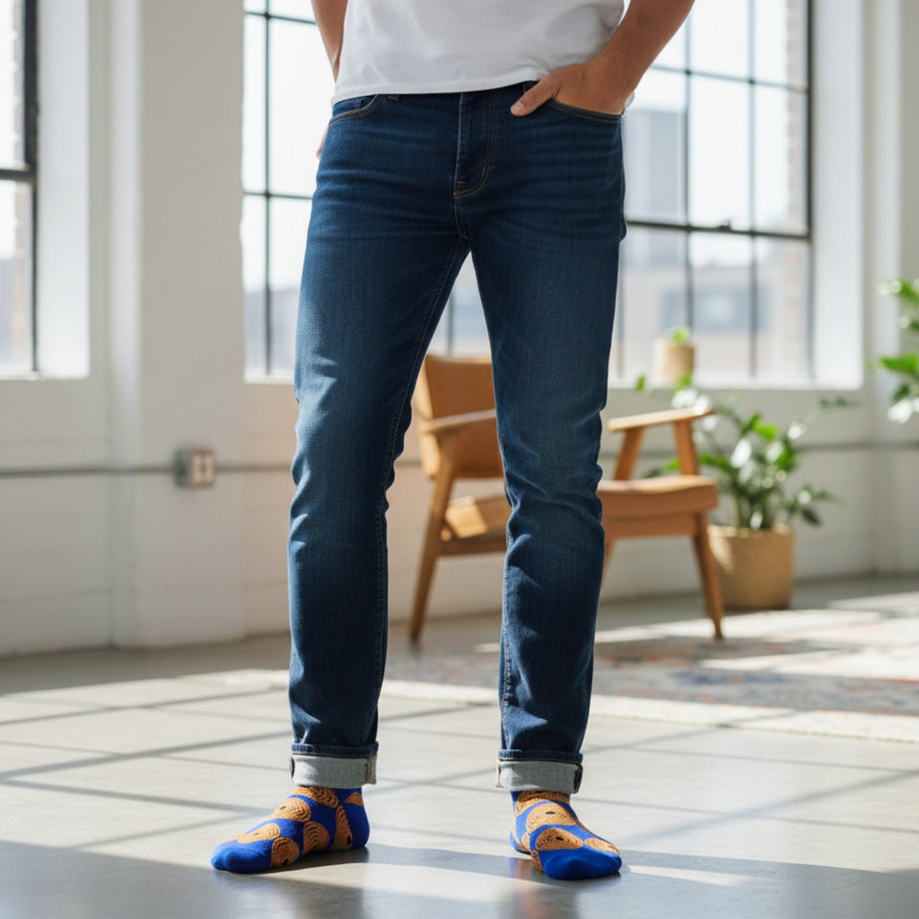Afrikanische Socken / Afro-Socken / Kente-Socken - Blau Gelb Circles