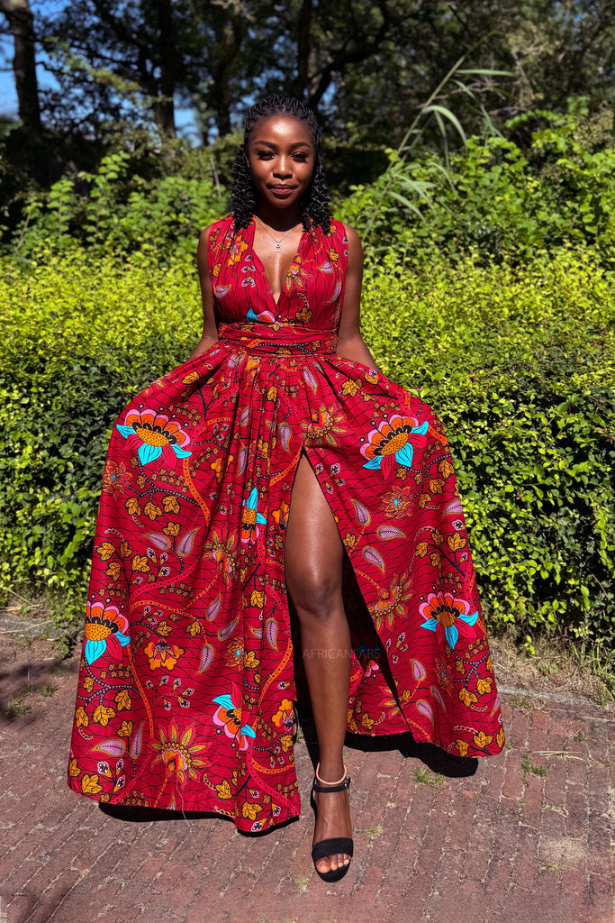 Afrikanischer Print Infinity Multiway Maxikleid - Rot & Blau Flowers