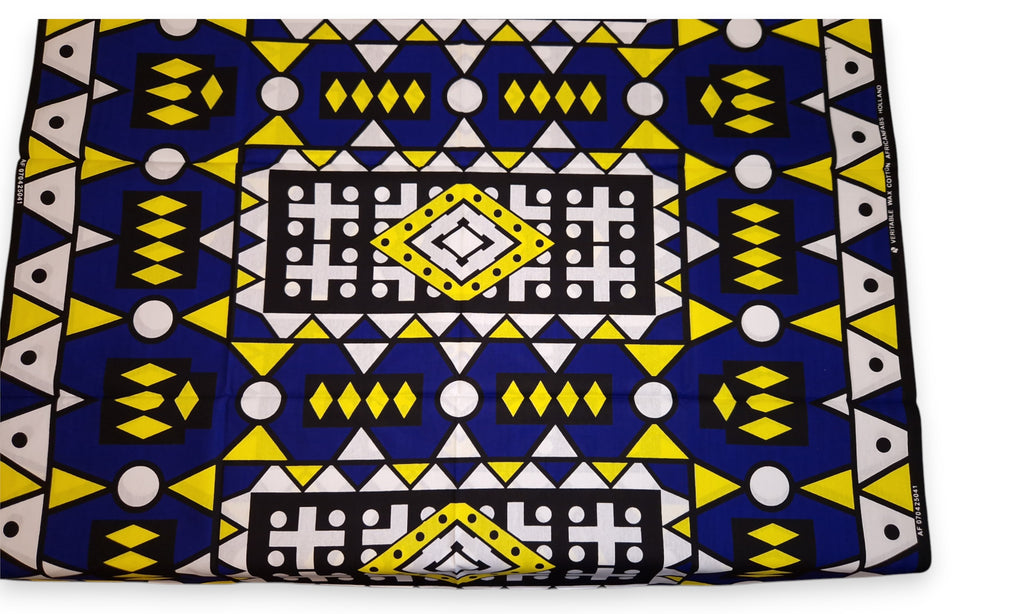 Afrikanischer Print Stoff - Blau Gelb Samakaka / Samacaca (Angola) - 100% Baumwolle