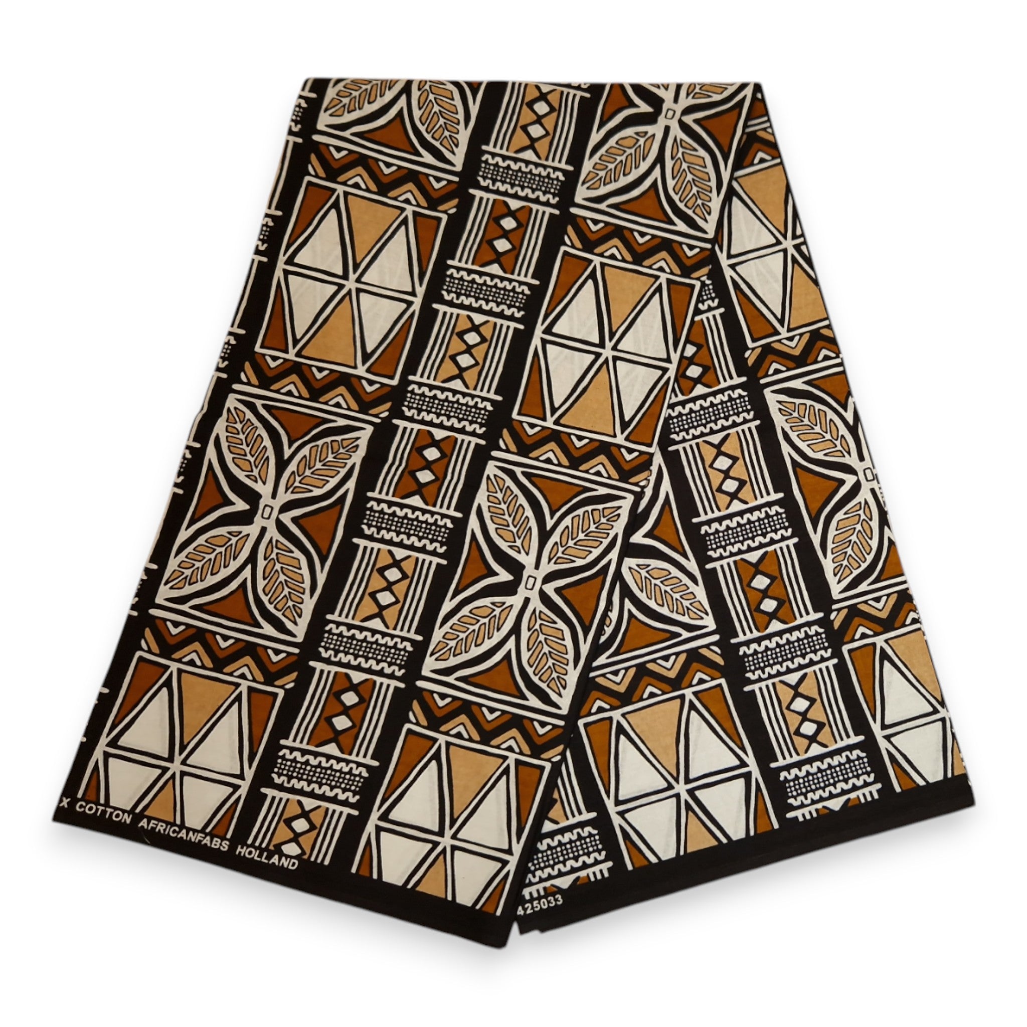 Afrikanischer Print Stoff - Braun und Weiß Bogolan Symbols - 100% Baumwolle