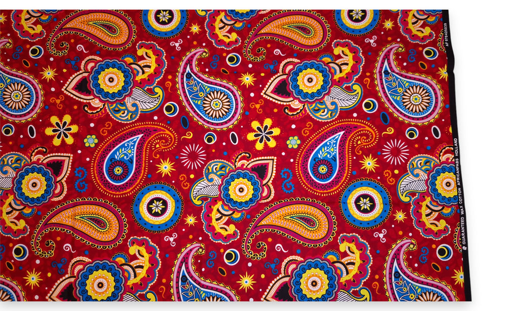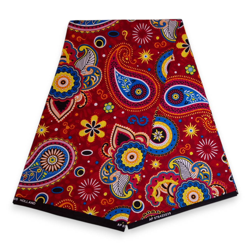 Afrikanischer Print Stoff - Rot Blau Paisley - 100% Baumwolle