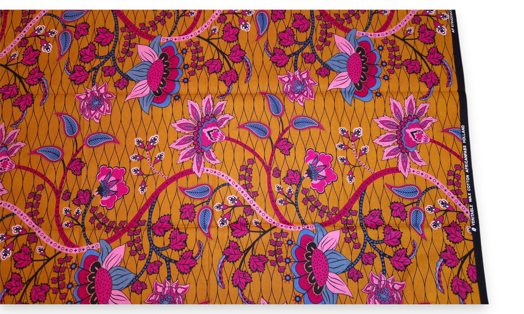 Afrikanischer Print Stoff - Senfgelb und Rosa Botanical Flow - 100% Baumwolle