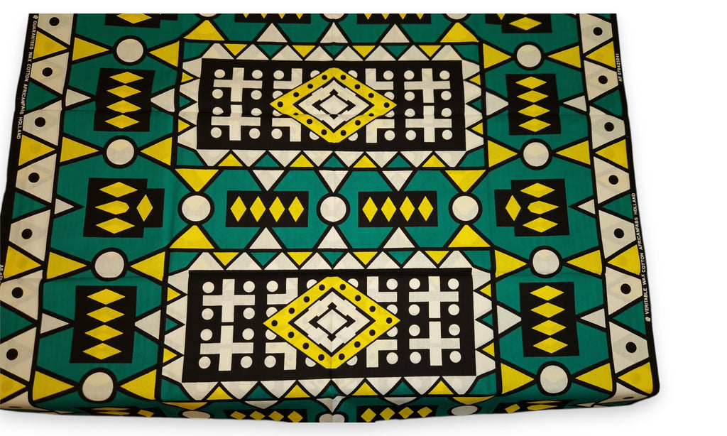 Afrikanischer Print Stoff - Türkis Gelb Samakaka / Samacaca (Angola) - 100% Baumwolle